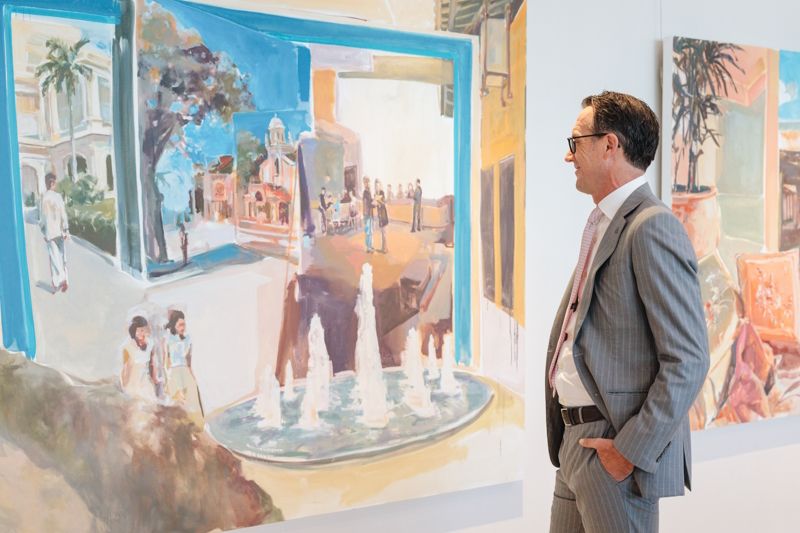 His two paintings, “Destination image: Reception” and “Destination image: Lobby”, draw inspiration from the historical images and postcards depicting Penang Road, the nearby Fort Canning Road and Orchard Road, imbuing the works with the heritage and legacy of the location of our new office building.
