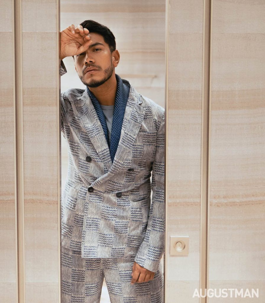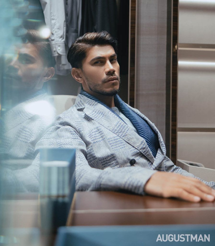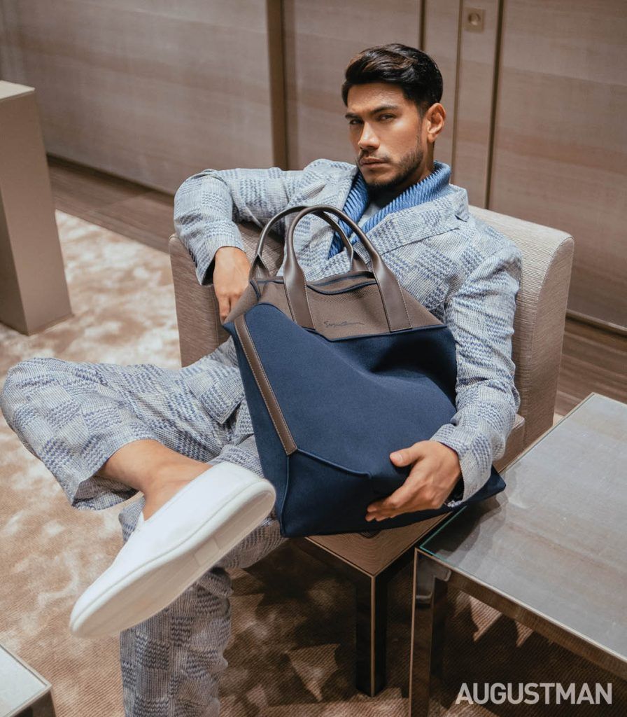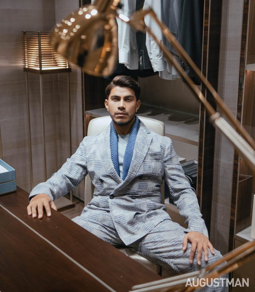 Lightweight, soft and flowy to the touch, the choice of materials used in the collection perfectly expresses a sense of fluidity in the designs. Out of the array of clothing displayed, Azrel chose the ASV stretch-viscose jacquard-jersey crew-neck jumper as his favourite piece from the collection. For accessories, the actor went with a classic wallet in a light brown shade.